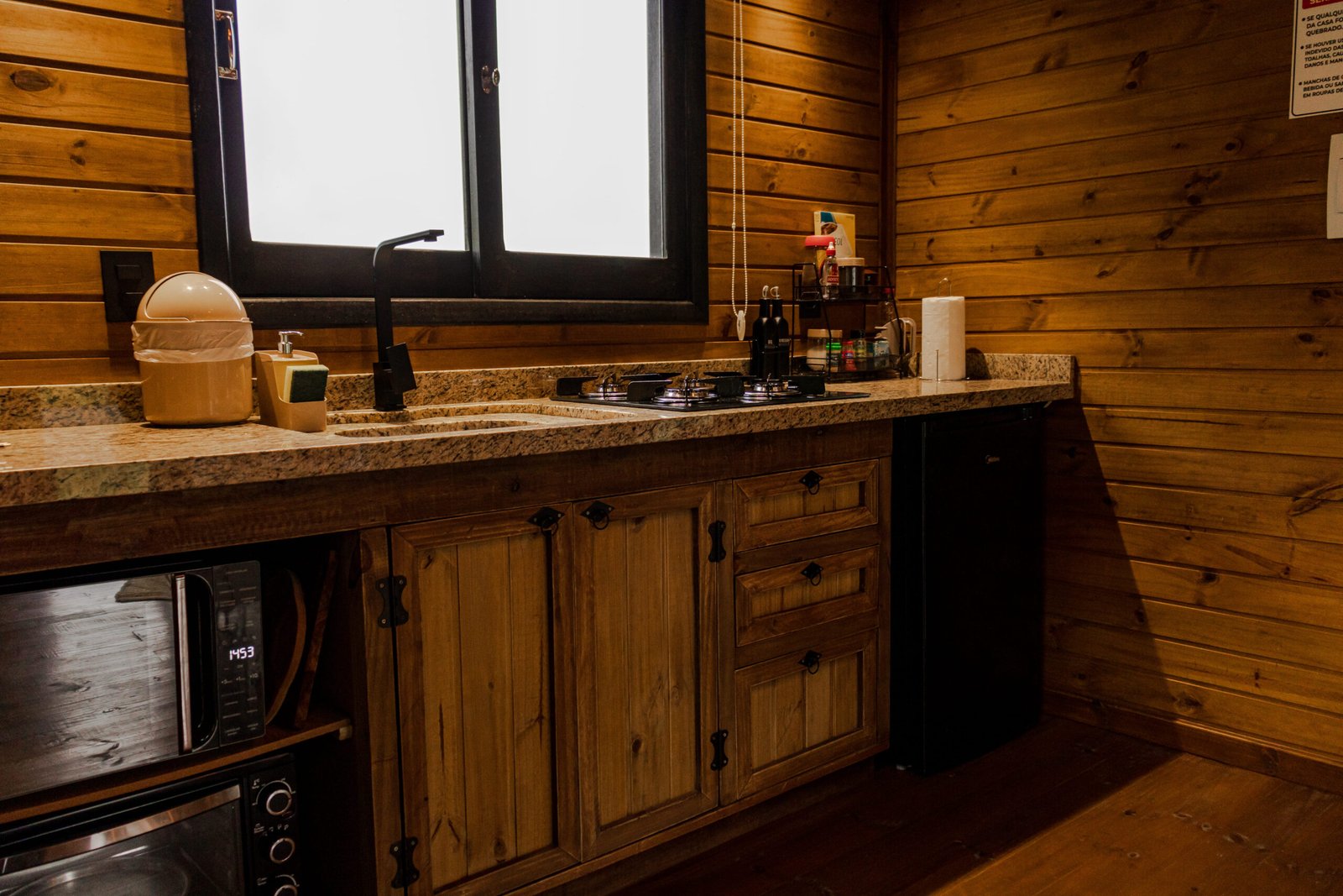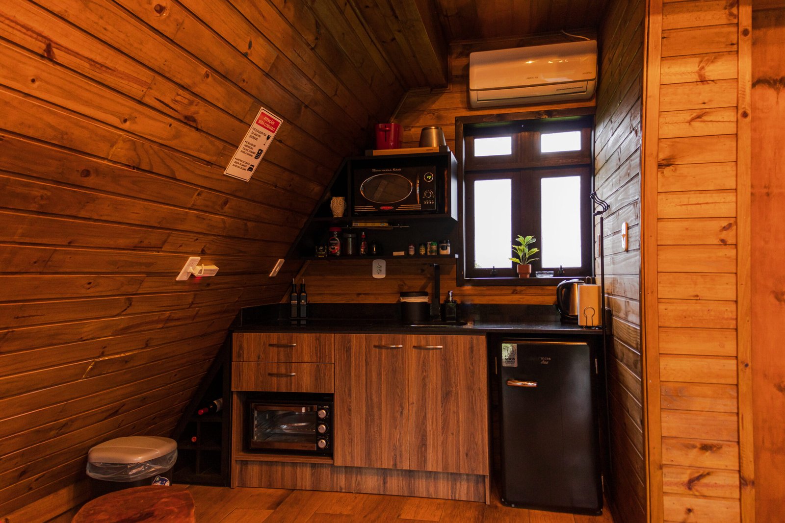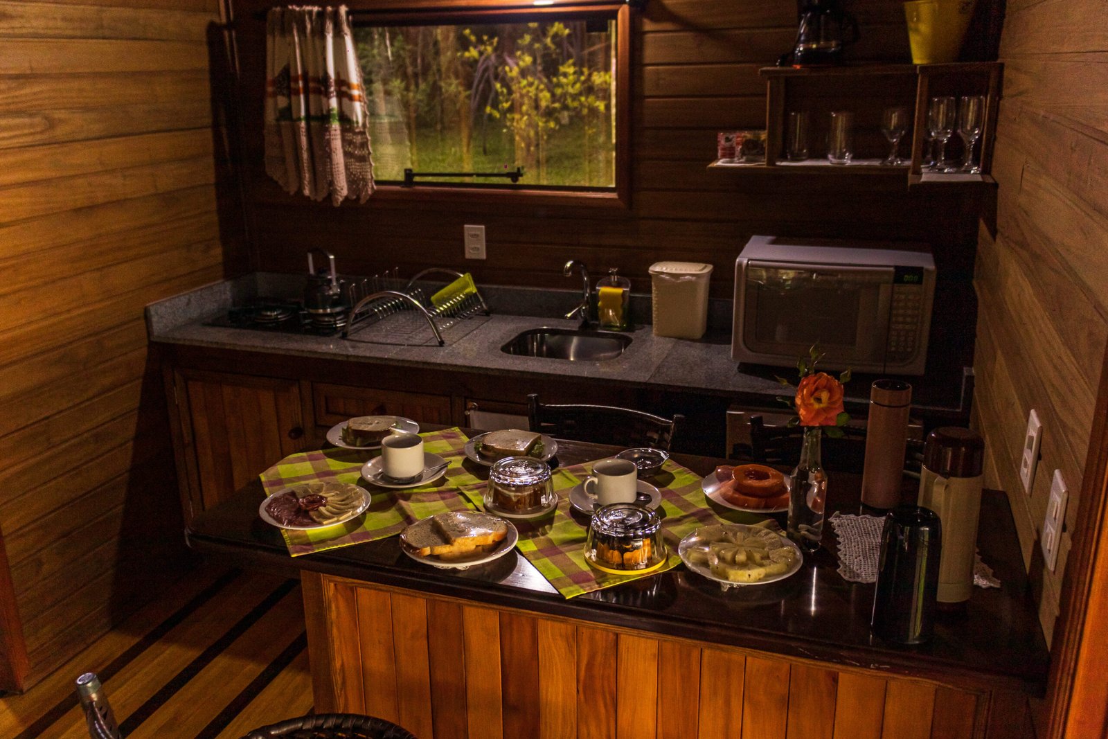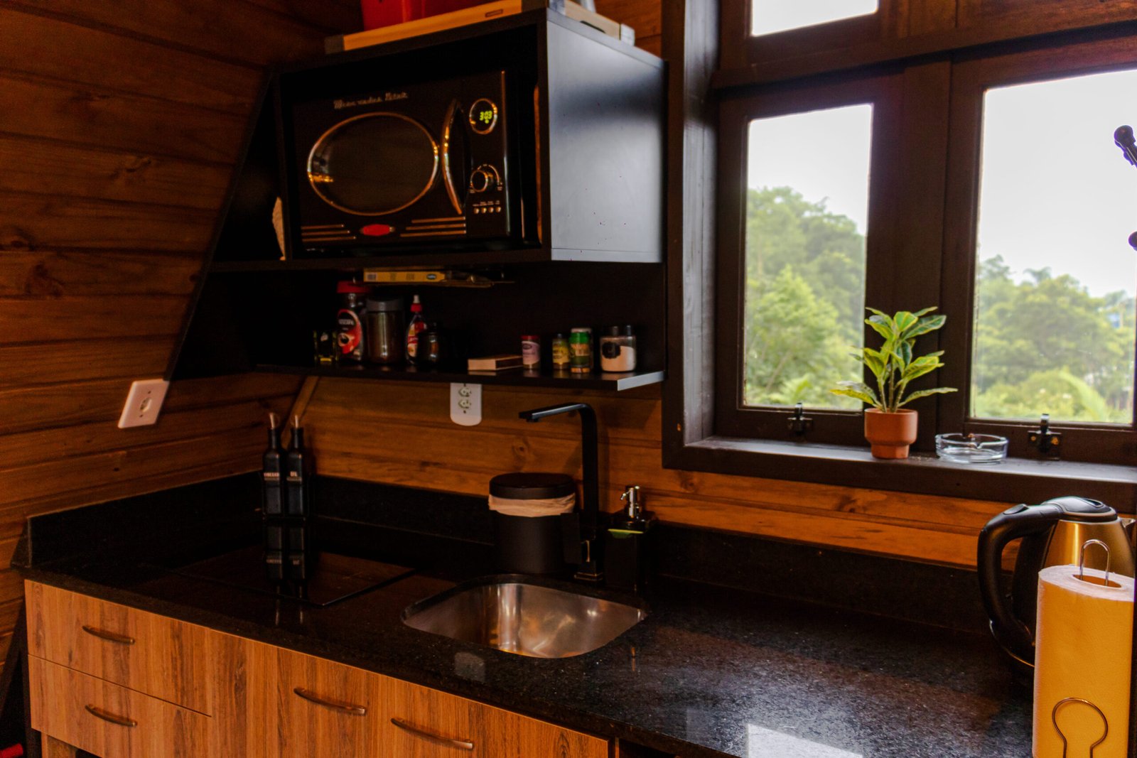 Frigobar, fogão, forno elétrico, micro-ondas e utensílios sofisticados, incluindo taças de vinho e espumante de cristal, para que você possa preparar refeições especiais.