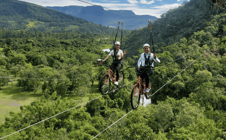 O Skybike é uma experiência única e desafiadora! Imagine pedalar por cabos de aço suspensos a dezenas de metros de altura, com uma vista incrível dos cânions abaixo. Com total segurança, essa atividade combina adrenalina e contemplação, oferecendo uma perspectiva inesquecível da região.